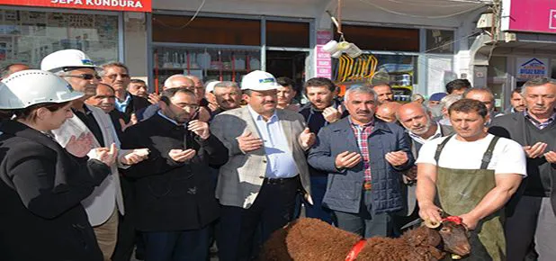 K. Camii Şirin Taksi durağı mevkiinde yapılan törene ilçe müftüsünün duası ile başlandı. Doğalgaz hattı şebekesinin ilçeye hayır getirmesi isteğiyle kurban kesildi.