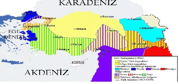 Bu haritaya çok iyi bakalım. Bu haritayı, bir fotoğraf makinesi gibi, hiçsilinmemek üzere hafızamıza kaydedelim.Bu harita, Birinci Dünya Savaşında yenilen Osmanlı Devletinin, galip devletlertarafından nasıl paylaşılacağını gösteren “Sevr Antlaşması” haritasıdır.10 Ağustos 1920 tarihinde imzalanan “Sevr Antlaşmasına” göre, Türkiyetoprakları; İngiltere, Fransa, İtalya ve Yunanistan arasında paylaşılıyordu.Ayrıca, Ermenilere ve Kürtlere de, Anadolu topraklarından pay verilmesi kabulediliyordu.Türk Halkına ise, haritada düz sarı renkle işaretlenmiş olan Ankara vecivarındaki topraklar bırakılıyordu.Padişah Vahdettin efendimizin İstanbul Hükümeti; “Şüray-ı Saltanat” isimliolağanüstü bir kurul toplayarak “ Sevr Antlaşması” adı verilen bu sözde barıştaslağını imzaladı ve Türkiye topraklarının haritada belirtildiği şekildepaylaşılmasını kabul etti.İşte, Atatürk ve arkadaşları buna isyan etti.Sevr Antlaşmasıyla Türk Milletine; ağır koşulların dayatıldığı, OsmanlıOrdusunun elindeki silahların alınıp dağıtıldığı, Yunanlıların İzmir’i işgal edip katliamlara başladığı, kadınlarımız ile kızlarımıza ahlaksızca tecavüz edildiği veişgal edilen topraklarımızda ezan seslerinin sustuğu bir dönemde:a. Atatürk ve arkadaşları Anadolu’ya geçerek; Mili Kuvvetler ( KuvayiMilliye) adı altında Türk Ordusu’nun çekirdeğini oluşturan milli direniş örgütünü kurdular.b. Türkiye’nin; Yunan, İngiliz, Fransız, İtalyan ve Ermeni birliklerince işgaledildiği Anadolu topraklarında Kurtuluş Savaşını başlattılar.c. Kahraman ve cefakâr Türk Halkıyla elbirliği ve gönül birliği yaptılar.Kanlarını dökerek ve şehitler vererek işgal kuvvetlerini yendiler.Böylece “Sevr Antantlaşmasını” yırtarak, tarihin çöp tenekesine attılar.Şimdi, aşağıdaki ikinci haritaya da çok iyi bakalım:Bu haritayı da, bir fotoğraf makinesi gibi, hiç silinmemek üzere hafızamızakaydedelim. Çünkü:a. Bu harita; Türk Halkının bağrından çıkan Türk Ordusunun, Atatürk veSilah Arkadaşlarının önderliğinde kurtardıkları Türkiye topraklarını vebugünkü Ortadoğu devletlerini göstermektedir.b. Bu harita; Kurtuluş savaşında kanlarını döken ve şehitler veren Türk Halkının kazandığı zaferin bedeli olarak, Türkiye Cumhuriyeti’nin pusunun “Lozan Antlaşmasıyla” tescil edildiği sınırlarıgöstermektedir.c. Bu harita; sadece işgal kuvvetlerine karşı verilen mücadeleyi değil, aynizamanda:1) İşgal kuvvetleriyle işbirliği yapan mütareke basınına,2) İşgalcililerle savaşan Kuvayi Milliye (Türk Ordusu) Birliklerialeyhine, ölüm fetvaları veren sözde hacı ve hoca takımına,3) Milli mücadelenin önderi Atatürk ve Arkadaşları hakkında idam kararları veren Padişaha rağmen, kazanılan ve işgalden kurtarılan topraklarda ezan seslerinin tekrar çınlamaya başladığı sınırlarıgöstermektedir.İşgalci devletler; Osmanlı’nın küllerinden yeniden doğan TürkiyeCumhuriyeti’ni hiçbir zaman içlerine sindiremediler. Atatürk ve Silah Arkadaşlarını asla affetmediler. Çünkü:a. Sayın Turgut Özakman’ın sözünü ettiği çılgın Türklerin, emperyalistsömürgeci işgal devletlerine karşı verdikleri zorlu mücadele vekazandıkları muhteşem zafer, işgal altındaki sömürgelere örnek oldu.b. Sömürülen uluslar kendi özgürlük mücadelelerini başlattılar. Böylece, Batı’nın emperyalist sömürgeci devletleri, zaman içinde sömürgelerinikaybettiler.İşgalcilerle işbirliği yapan hainler de, bir türlü yeni Türkiye Cumhuriyeti’nihazmedemediler. Çünkü:a. Dün İşgalci Batı tarafından beslenen Mütareke Basını hainlerinin torunları, bugün de ayni Batı tarafından beslenmekte ve o devletlerin çıkarlarına hizmet etmektedirler.b. Bu ülkenin ve milletin özgürlüğü, can ve mal güvenliği için kanlarınıdöken ve şehitler veren Türk Ordusu ve komutanları aleyhine, idam fetvaları veren din tüccarı sözde hacı ve hoca takımının torunları da:1) Bugün de, maddi ve siyasi çıkarları için din tüccarlığını sürdürmek istedikleri için, Atatürk ilkelerine dayalı Cumhuriyetin “laiklik” özelliği, din ticaretine engel olduğu için, yeni Türkiye Cumhuriyetini bir türlü kabullenemediler.Bir kısım etnik bölücü Kürtler ile Ermeniler de, Anadolu topraklarından payalamadıkları için;a. Sevr Antlaşmasını tarihin çöp tenekesine atan Lozan Antlaşmasını,b. Bu Antlaşmayla kurulan Türkiye Cumhuriyetini hiçbir zaman içlerinesindiremediler.Netice olarak; Menfaatleri zedelenen sömürgeci ve işgalci Batı Devletleri, işbirlikçi Mütareke Basını, çıkarcı din tüccarları ve etnik bölücüler, Osmanlının Küllerinden yeniden doğan Türkiye Cumhuriyeti ile Atatürk ve Silah Arkadaşlarını asla affetmediler.Söz konusu hainlerin kalıntıları, dün olduğu gibi bugün de, TürkiyeCumhuriyeti’nin “Ülkesi ve milletiyle bölünmez bütünlüğünü” ellerine geçen her fırsatta parçalamaya çalışıyorlar. Bu Cumhuriyete ve Cumhuriyeti kuran Atatürk’e karşı, içlerinde besledikleri kin ve nefret hiçbir zaman sönmedi vesönmeyecek. Bu nedenle; a. Türkiye Cumhuriyeti’nin çimentosunu ve kuruluş temellerini oluşturan “Kemalizmi” düşman belliyorlar ve öncelikle yok etmeye çalışıyorlar.b. Türkiye Cumhuriyetinin kuruluş belgesi ve tapusu olan “Lozan Antlaşması’ndan” nefret ediyorlar ve “Sevr’e” dönüş hayalleriyaşıyorlar.c. Türkiye Cumhuriyeti’nin kurucusu ve yılmaz savunucusu “Türk Ordusunu” kendileri için en büyük engel görüyorlar ve ortadan kaldırılması veya yıpratılması gereken hedef olarak benimsiyorlar.d. Cumhuriyet sevdalısı “Kemalist aydınları ve medyayı” susturmayaçalışıyorlar.Lütfen dikkat edelim; herhangi bir yabancı, herhangi bir
