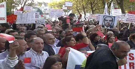 Ayrımcılığa, asimilasyona ve savaşa karşı on bine yakın Avrupalı Alevi Cumartesi günü Strasbourg'ta yapılan protesto yürüyüşünde Başbakan Recep Tayyip Erdoğan ve AKP hükümetine kırmızı kart gösterdi.