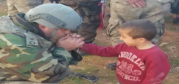 Sosyal medyada tıklanma rekoru kıran bu fotoğrafta Şırnak'ın Silopi ilçesinde küçük yaştaki bir çocuğun tabur Komutanı'nın yanına yaklaşarak üşüdüğünü söylemesi üzerine tabur komutanının, çocuğu nefesiyle ısıtmaya başlayan ve ellerini ovuşturan görüntüleri yer aldı.