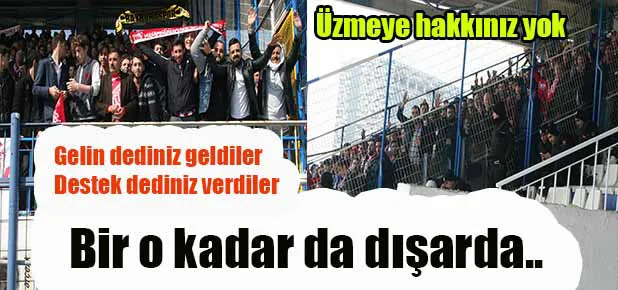 Karşılaşma öncesi stada giremeyen taraftar grubuna ise destek yine tribündeki taraftar grubundan geldi. Gümüşhanespor sevdalıları dışarıda kalan taraftarın içeri alınması için yönetim aleyhine ‘yönetim uyuma taraftarın dışarıda’! şeklinde slogan attı.