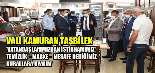Vali Kamuran Taşbilek, Koronavirüs tedbirleri denetimi kapsamında ilçede vatandaşlar ve esnafa tedbirlere eksiksiz uyulması noktasında uyarılarda bulunarak denetim gerçekleştirdi.