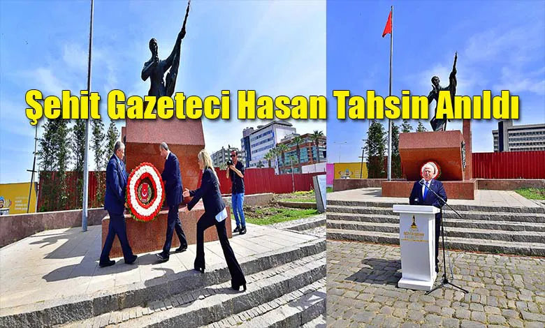 İzmir’in işgaline karşı ilk kurşunu sıkan gazeteci Hasan Tahsin, şehit edilişinin 104'üncü yılında unutulmadı. Meslektaşları Hasan Tahsin’i Konak’ta bulunan anıtı önünde andı.