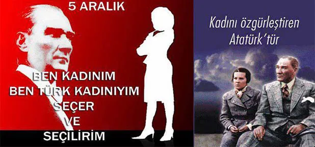 Bugün 5 Aralık. Türk Kadınına seçme ve seçilme hakkının tanındığı gün. Türkiye Cumhuriyeti'nin Kurucusu Mustafa Kemal Ataürk, kadını toplumun bir büyük değeri olarak bu ünvanı uygun gördü, kadınların toplumun kalkınmasında bir güç olarak gösterip onlara yurttaş olma bilincini yaşattı
