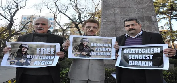 Gümüşhane’de yayın yapan bir yerel gazetenin çalışanları, hemşehrileri Milliyet gazetesi foto muhabiri Bünyamin Aygün'ün Suriye'de kaçırılmasıyla ilgili basın açıklaması yaptı.