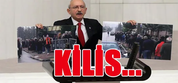 Kılıçdaroğlu, çekilen fotoğrafı kürsüden göstererek ‘Asgari ücretin altında ücret alan 1 milyon 800 kişi var. Bu bütçe bunların yarasına merhem oluyor mu? Hayır. Asgari ücretlilerle ilgili, 6 milyon 700 bin kişinin yarasına merhem oluyor mu? İşsizlikle mücadele hepimizin görevi. Size iki fotoğraf göstereceğim. Fotoğraflardan ikisi de Kilis'te çekiliyor. Türkiye İş Kurumu'nun 1 yıldan az süre çalışmak için işçi ilanına başvuran vatandaşlar. 16 yıldır Türkiye'nin geldiği nokta bu. Elinizi vicdanınıza koyun bu iki fotoğrafa bakın. Bunu 16 yılın sonunda söylüyoruz’. Diye konuştu.