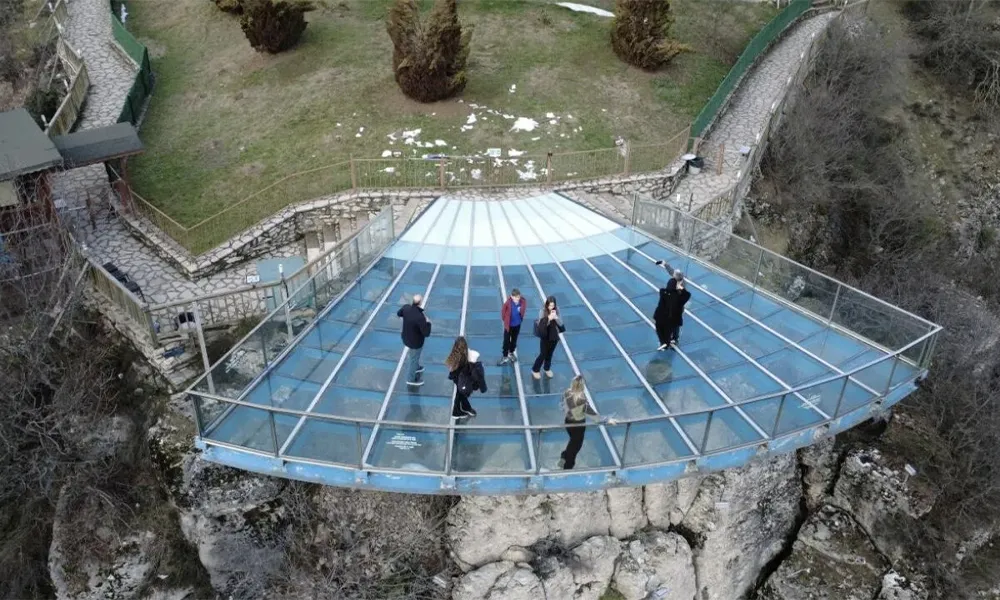 Yaklaşık üç asır önce Sadrazam İzzet Mehmet Paşa tarafından yaptırılan tarihi su kemerinin hemen yanında yer alan cam teras, 80 metre derinlikte kanyon manzarası sunuyor. 11 metre uzunluğundaki yapı, 75 ton yüke dayanıklı olmasıyla güvenli olduğu kadar etkileyici bir deneyim de yaşatıyor.