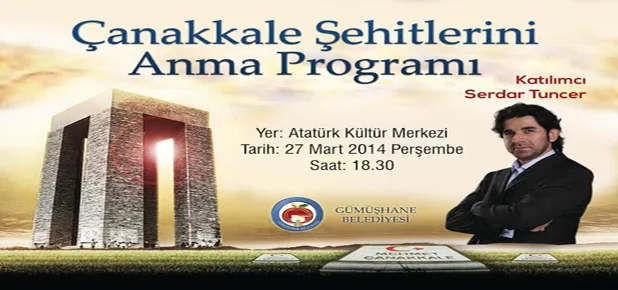 Gümüşhane Belediyesi Sosyal İşler Müdürlüğü'nce, "Çananakkale Şehitleri Anma Programı" düzenlenecek.