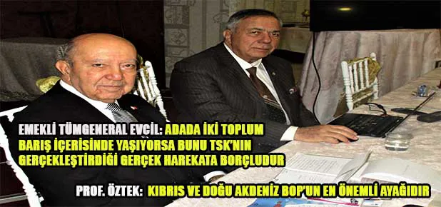 Emekli Tümgeneral Cumhur Evcil ve Emekli Prof. Tabip Kıdemli Albay İbrahim Öztek 45. Yılında Kıbrıs Barış Harekâtı ve sonrası ile Doğu Akdeniz’de başlayan Hidrokarbon (Petro - gaz) savaşları ve Ege sahillerimizdeki adalarımızın Yunanlılar tarafından işgali konusunu işlediler. Üsküdar Üniversitesi ve İstanbul Üçyolder’de yapılan açık oturumlar geniş bir izleyici tarafından takip edildi.