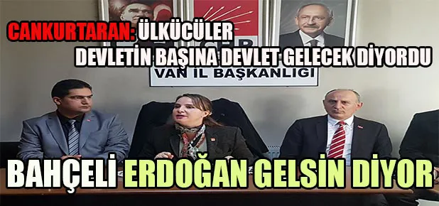 Van’da konuşan CHP Genel Başkan Yardımcısı Yasemin Öney Cankurtaran, Bahçeli’nin Erdoğan’ın adaylığına destek açıklamasını eleştirerek, “Ülkücüler yıllarca Bahçeli’yi kastederek ‘Devletin başına Devlet gelecek’ diyordu, Bahçeli ise ‘Hayır Erdoğan gelsin ben de destek olacağım’ diyor. Bahçeli’nin bu yaptığı Ankara Savaşı’nda saf değiştirip Timur’un ordusuna katılan Anadolu Beylikleri’ne benziyor” diye konuştu.