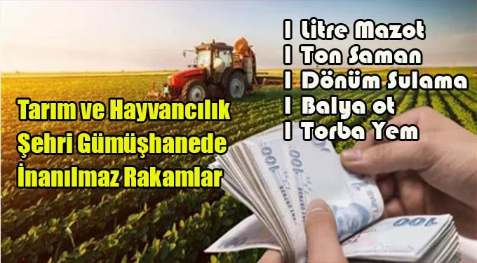 Gümüşhane'de bu fiyatlar sinsilesinde üretim ve gelir elde etmenin çok zor olacağını belirten çiftçiler son rakamları ise şu şekilde özetlediler: '50 kg yem 140 TL, 50 kg gübre 160 TL, Mazotun litresi 6.50 TL, 1 ton saman 1 000 TL, Bir balya ot 25 TL, Bir dönüm tarla sulama 96 TL (Koruluk Barajından DSİ’ye ödeniyor.)'