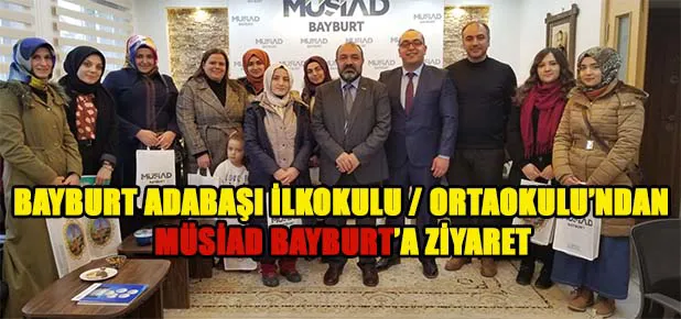 MÜSİAD Temsilciliğine nezaket ziyaretinde bulunan Bayburt Merkeze bağlı Adabaşı İlkokulu / İmam Hatip Ortaokulu Müdürü Ramazan Bozdemir ve sınıf öğretmenlerini MÜSİAD Bayburt Başkanı Erdal Şentürk, Yönetim Kurulu Üyesi Fatih Durğut ve Temsilcilik Müdürü Naci Ahıskalıoğlu karşıladı.