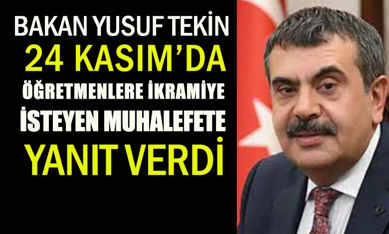 Milli Eğitim Bakanı Yusuf Tekin muhalefetin “24 Kasım’da öğretmenlere ikramiye verilsin” çağrısına yanıt verdi.