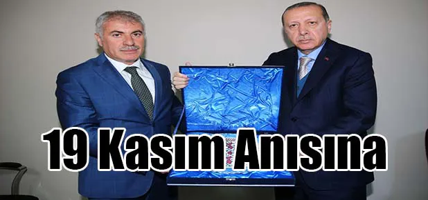 19 Kasım Pazar günü Bayburt’a gelen Cumhurbaşkanı Recep Tayyip Erdoğan, Belediye Başkanı Mete Memiş’e ziyaret anısına plaket takdim etti.
