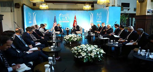 Cumhurbaşkanı Recep Tayyip Erdoğan, Antalya’da gerçekleşen G-20 Liderler Zirvesi boyunca dünya liderleriyle ikili görüşmeler gerçekleştirecek. Bu görüşmeler kapsamında ilk buluşma ise ABD Başkanı Barack Obama ile yapıldı. Erdoğan, Obama ile görüşmesine damadı olan AKP İstanbul Milletvekili Berat Albayrak’ı da aldı.