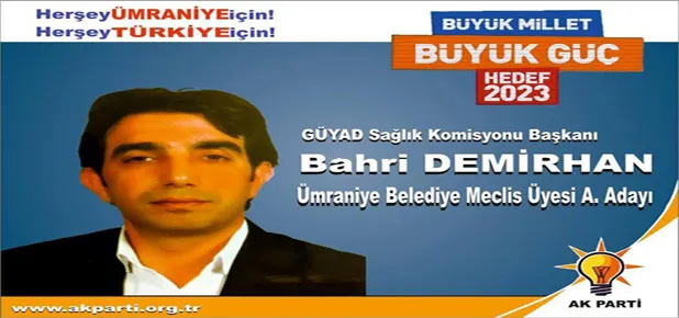 Gümüşhane İli ve İlçeleri Yardımlaşma ve Kalkındırma Derneği (GÜYAD) Sağlık Komisyonu Başkanı Ve Ümraniye Yayladereköyü şubesi Onursal Başkanı Bahri Demirhan, Ümraniye belediyesi Meclis üyeliğine aday adayı oldu.