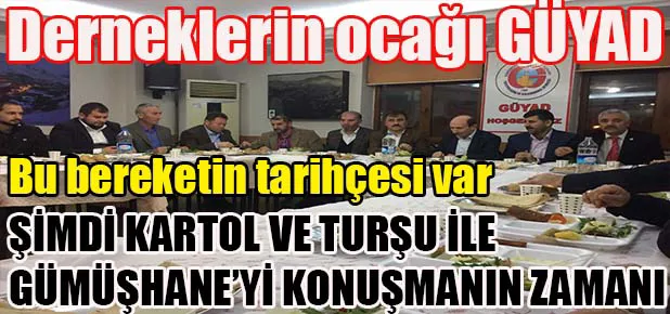 Gümüşhane İli ve İlçeleri Yardımlaşma ve Kalkındırma Derneği, (GÜYAD) her ayın son haftasına denk gelecek takvim gününde Gümüşhane yöresine özgü geleneksel turşu ve kartol (patates) ikramıyla dernek merkezinde hemşerilerini ağırlıyor.