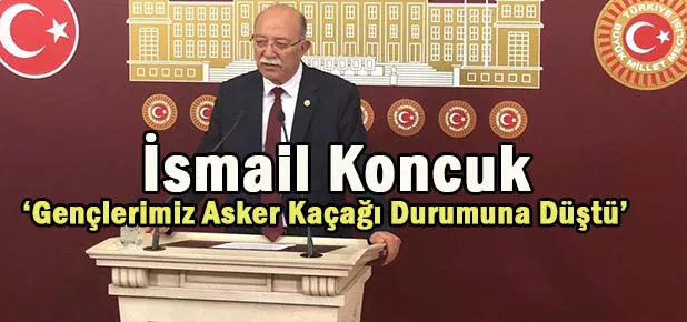 İYİ Parti Adana Milletvekili İsmail Koncuk, “Askeralma Kanununda yapılan düzenleme ile yoklama döneminde olan gençlerimize detaylı bildirim / bilgilendirme yapılmadığından, dolayı yoklamada kaçak durumuna düştüğü gibi bedelli askerlik hizmetinden de faydalanamamaktadır. Yaş sınırının 29’dan 22 yaşa düşürülmesiyle gençlerimiz, haberi olmadan yoklama kaçağı durumuna düştü.” Dedi.