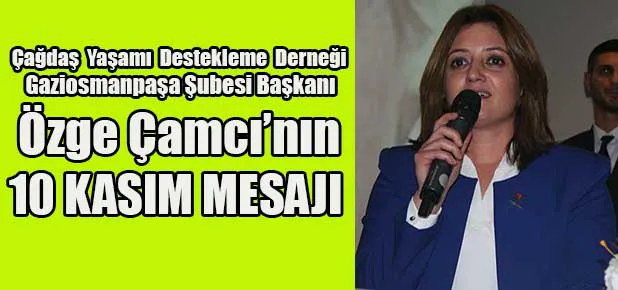 Çağdaş Yaşamı Destekleme Derneği Gaziosmanpaşa Şubesi Başkanı Özge Çamcı’nın Mustafa Kemal Atatürk’ün vefatının 82. yıldönümü nedeniyle yayınladığı mesaj şu şekilde: