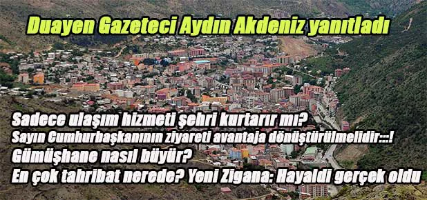 Gazeteci Aydın Akdeniz, Gümüşhane’de son yıllarda yapılan en iyi hizmetin ulaşım sektöründe olduğunu söyledi.