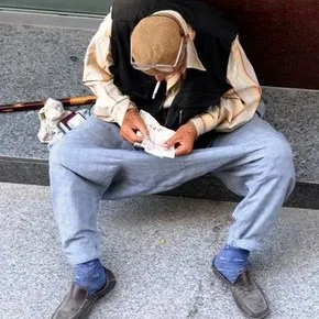 Adana'da yaşlı bir dilenci, öğlen saatine kadar topladığı paraları yaklaşık 10 dakikada sayabildi.
