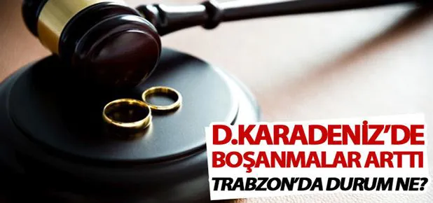 TÜİK Trabzon Bölge Müdürlüğü’nün,TÜİK verilerinden derlediği bilgilere göre, Doğu Karadeniz illerinde boşananların sayısı bir önceki yıla göre Trabzon'da yüzde 0,1 artarak 679'a, Rize'de yüzde 14,6 artarak 346'ya, Giresun'da yüzde 12,9 oranında artarak 570'e ve Ordu’da yüzde 8,7 artarak 889’a yükselirken, Gümüşhane'de yüzde 11,0 oranında düşerek 81'e ve Artvin'de yüzde 18,1 oranında düşerek 140’a geriledi.