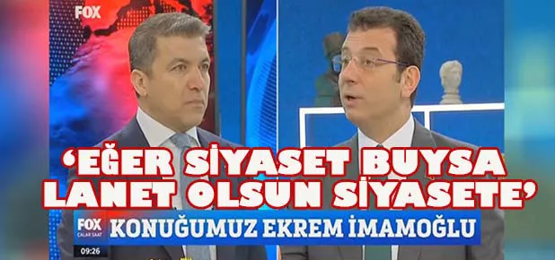 İstanbul Büyükşehir Belediye (İBB) Başkanı Ekrem İmamoğlu, FOX TV’de canlı yayınlanan “Çalar Saat” programında, gazeteci İsmail Küçükkaya’nın sokağa çıkma yasağından sosyal medya “trollerine” kadar birçok soruna yanıt verdi. Küçükkaya’nın sorduğu bazı sorular ve bu sorulara İmamoğlu’nun verdiği yanıtlar şunlar oldu: