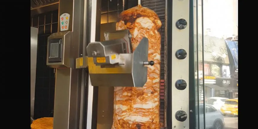 Yapılan mekanik donanım ile devasa döner bir yandan pişirilirken sıra servis esnasına gelmeden önce işte böyle göze hoş gelen bir şekilde ustasını yormadan kesiliyor.