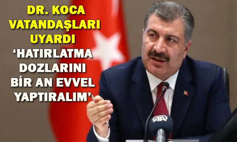 Sağlık Bakanı Dr. Fahrettin Koca, koronavirüs vakalarında görülen düşüşe rağmen yeniden baş gösteren Omıcron varyantına dikkat çekerek vatandaşları üçüncü doz hatırlatma aşıları konusunda uyardı.