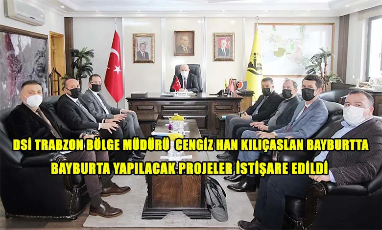 DSİ Trabzon Bölge Müdürü Cengiz Han Kılıçaslan, Bölge Müdür Yardımcısı Olcay Çubukçu, Bölge Müdür Yardımcısı Deniz Kenanoğlu, Bayburt DSİ Şube Müdürü Bülent Kaya, Proje ve İnşaat Şube Müdürü Hüseyin Kuduban, Havza Yönetimi İzleme ve Tahsisler Şube Müdürü İlyas Erdoğan ile İçme Suyu ve Atıksu Şube Müdürü Ümit Demirdağ Bayburt Belediye Başkanı Hükmü Pekmezci’ye ziyarette bulundular.