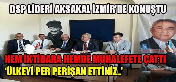 DSP Genel Başkanı Önder Aksakal, bir dizi programlarda bulunmak üzere İzmir’e geldi. Genel Başkan Aksakal, burada basın açıklamasında bulundu. Aksakal, şunları kaydetti