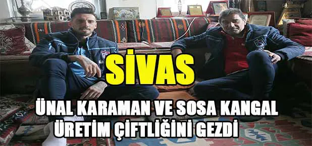 Sivas’ta kangal yetiştiriciliği yapan bir çiftliği ziyaret eden Trabzonspor Teknik Direktörü Ünal Karaman ve Kaptan Jose Sosa, Kangal köpeği eğitmeni Hüseyin Yıldız’ın daveti üzerine Meraküm’de tesisi gezip dünyaca ünlü Sivas kangal köpeklerini sevdiler.