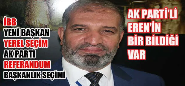 Eren, ‘Yeni İBB başkanı için, ‘Yapılan istişareler sonucunda İBB başkanlığına sayın cumhurbaşkanımız tarafından Mevlüt Uysal aday olarak açıklanmıştır. Sayın Uysal’da İBB’nin mevcut AK Partili bütün belediye meclis üyelerinin tamamının oyunu alarak İBB başkanı olmuştur. Ben İstanbul halkına ve sayın Mevlüt Uysal’a hayırlı olsun temennisinde bulunmak istiyorum’ dedi.