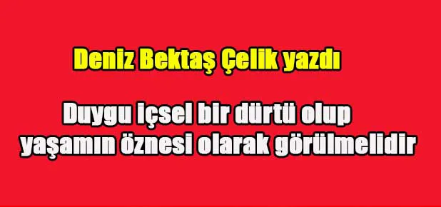 Zira duygu, içsel bir dürtü olup; yaşamın öznesi olarak görülmelidir.