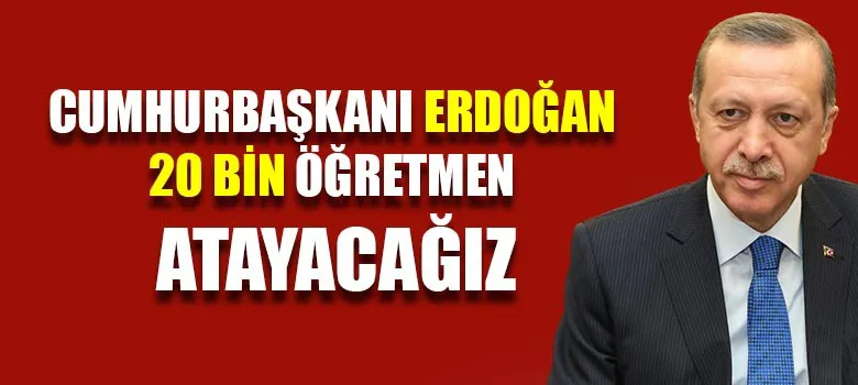 Cumhurbaşkanı ve AK Parti Genel Başkanı Recep Tayyip Erdoğan, 20 bin öğretmen ataması yapacaklarını söyledi. Cumhurbaşkanı Erdoğan "Önümüzdeki aylarda 20 bin öğretmenimizin atamasını yapacağız" dedi.