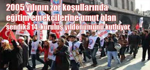 Büyük Önderimiz Mustafa Kemal Atatürk ve silah arkadaşlarının kurduğu Cumhuriyet'i, onun değerlerini ve öğretilerini, laik, bilimsel, demokratik ve ulusal eğitimi korumak ve geliştirme uğraşıyla geçen bu 14 yıl, eğitim emekçilerinin haklı mücadelesinde yüz akı olmuştur.