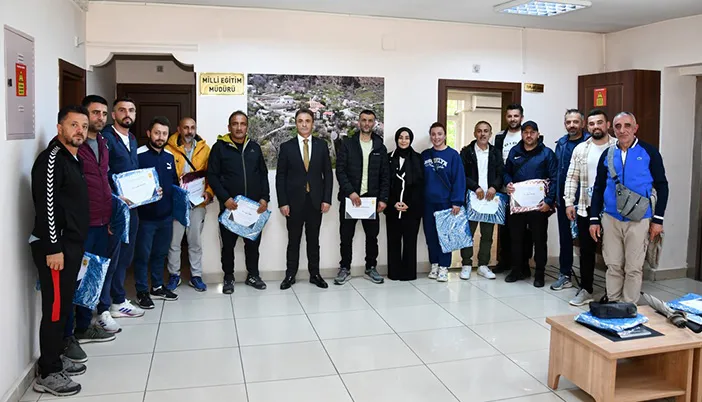 Gümüşhane İl Milli Eğitim Müdürü Şener Doğan, “Gelenekten Geleceğe Büyüyorum” projesi kapsamında düzenlenen sportif müsabakalarda görev alan beden eğitimi ve spor öğretmenleriyle bir araya geldi. İl Milli Eğitim Müdürlüğü toplantı salonunda gerçekleşen buluşmada, Müdür Doğan öğretmenlere teşekkür ederek hediyelerini takdim etti.