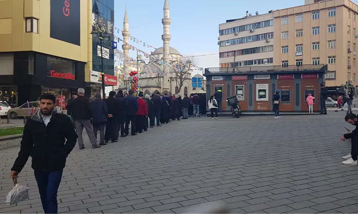 Gaziosmanpaşa Meydanı'nda objektiflere yansıyan görüntülerde, ucuz ekmek almak isteyen vatandaşların uzun kuyruklar oluşturduğu dikkat çekti.