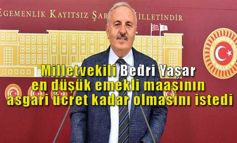 İYİ Parti Yerel Yönetimler Başkan Yardımcısı Samsun Milletvekili Bedri Yaşar, yaşanan hayat pahalılığı ve yüksek enflasyon karşısında emeklilerin 5.500 lira maaşla geçinmelerinin mümkün olmadığına işaret ederek, en düşük emekli maaşının hiç olmazsa 8.500 liralık asgari ücret seviyesine yükseltilmesi gerektiğini söyledi.
