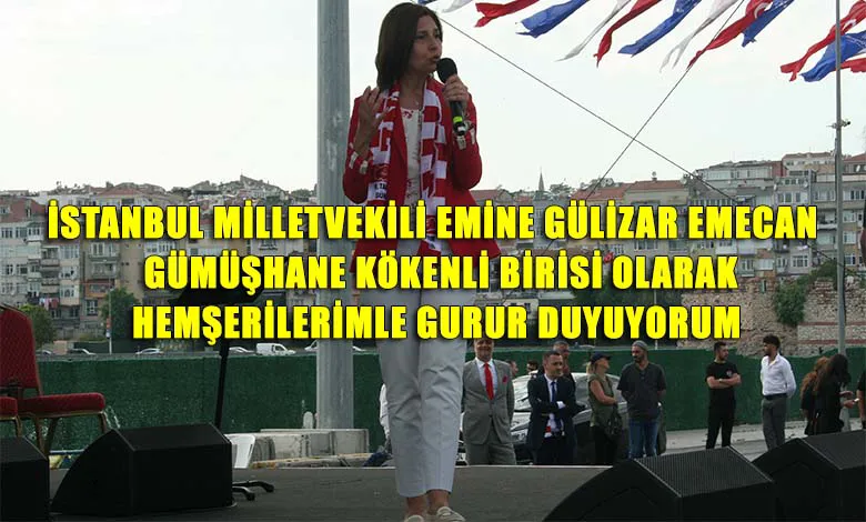 CHP İstanbul Milletvekili Emine Gülizar Emecan memleketine olan özlemini Gümüşhane Tanıtım Günlerinde dile getirdi. Protokole seslenen Eemecan, Gümüşhane kökenli bir milletvekili olarak memleketi ile gurur duyduğunu ifade etti. Emecan, şu şekilde konuştu: