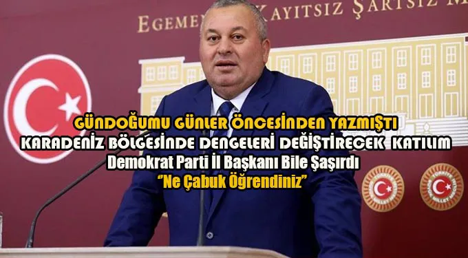 Cemal Enginyurt'un Demokrat Partiye katıldıktan sonra görüşlerini paylaştığımız İl Başkanı Şerif Akıntürk ise şaşkınlığını, ''Ne çabuk haber aldınız'' sözleriyle dile getirdi.