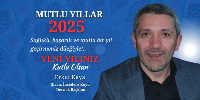 Yeni yılın hepimize sağlık, mutluluk ve huzur getirmesini diliyorum. 2025’in köyümüz, Şiran’ımız ve ülkemiz için bereketli, birlik ve beraberlik içinde geçecek bir yıl olmasını temenni ediyorum.