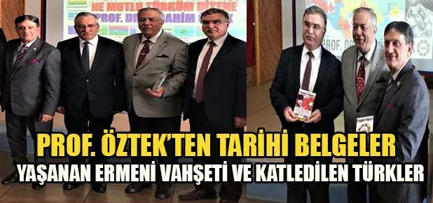 Prof. Dr. İbrahim Öztek, Ermeni yalanlarına karşı gerekli mücadeleyi yapmıyoruz. Ermeniler Dünyanın her tarafında 150 ye yakın soykırım anıtları diktiler. Son derece sistemli çalışıyorlar. Amaçları Türkiye’den tazminat ve toprak kopartmak, hâlbuki Türkiye’de çalışan ve Türk çocuklarına dadılık yapan Ermeni hanımlar, her yıl ülkelerine 2 - 3 milyar dolar para götürüyor ve ekonomilerini ayakta tutuyorlar dedi.