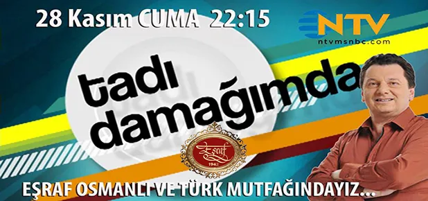 Türk ve Osmanlı Mutfağı’nın mirasçısı Eşraf Lokantası Yemek Eleştirmeni Vedat Milor’un hazırlayıp sunduğu ‘Tadı Damağımda’ programında konu edilecek.