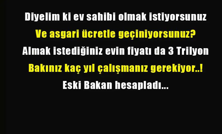 Bugünkü koşullarda fiyatı 3 Trilyon olan ev için kısa bir hesap yapan Eski Devlet Bakanı Fikri Sağlar’ın hesabına göre bir vatandaşın yaklaşık 29 yıl birikim yapması gerekiyor.