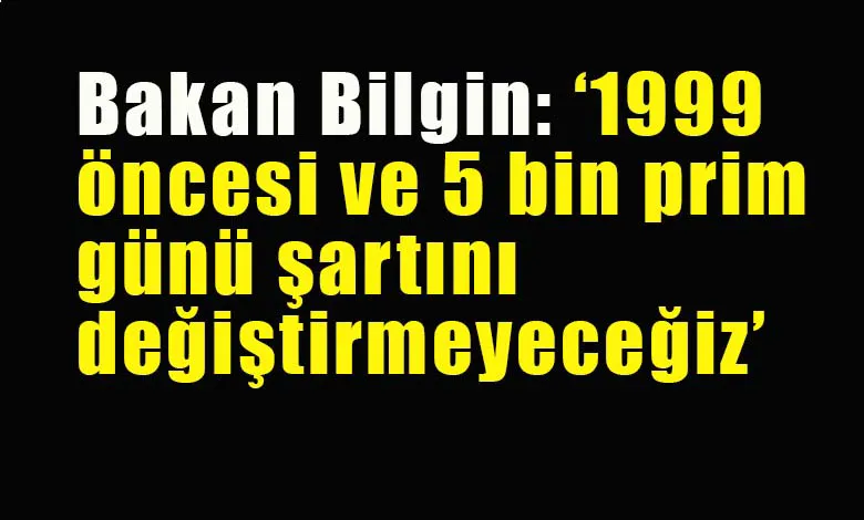 Çalışma ve Sosyal Güvenlik Bakanı Vedat Bilgin EYT ile ilgili yapılan düzenleme hakkında, “1999 öncesi ve 5 bin pirim günü şartını değiştirmeyeceğiz” dedi.
