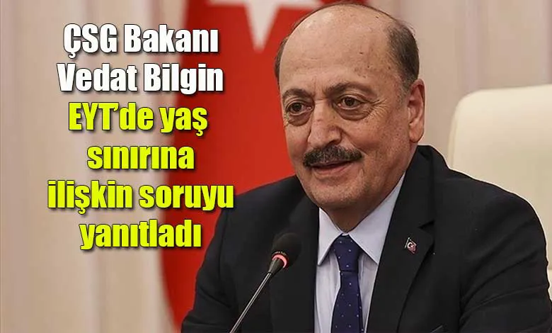 Çalışma ve Sosyal Güvenlik Bakanı Vedat Bilgin, "EYT'de yaş sınırı olacak mı?" sorusunu yanıtladı. Bakan Bilgin, "Genel Kurul'daki bütçe görüşmelerinde açıklayacağım" dedi.