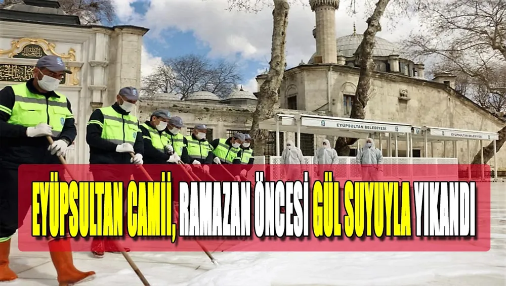 Yüzyıllardır Ramazan’ın en güzel şekilde yaşandığı, İslam âleminin gözbebeği Eyüpsultan’da Ramazan Ayı hazırlıkları kapsamında Eyüpsultan Camii Meydanı ve cami içerisi gül suyu ile yıkandı, temizlendi. Caminin içerisi, avlusu, abdest alma yerleri Eyüpsultan Belediyesi dezenfeksiyon ekipleri tarafından dezenfekte edildi.