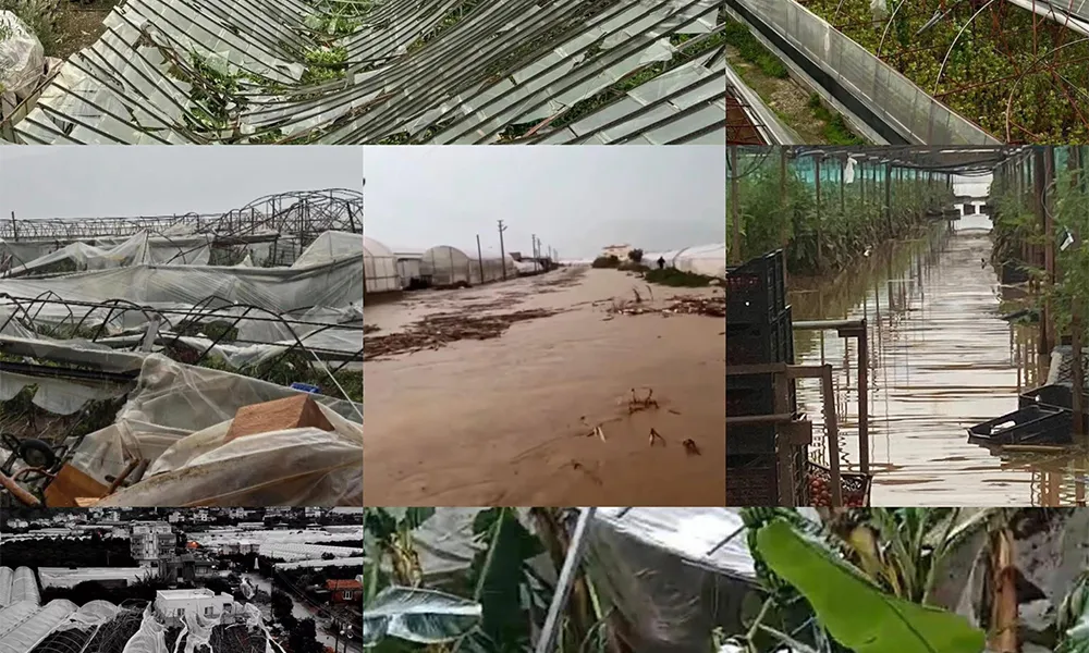 Son 5 gün içerisinde etkili olan aşırı yağış, fırtına, hortum ve dolu yağışı; Antalya’nın Finike, Demre ve Kumluca ilçeleri başta olmak üzere birçok tarım merkezinde ciddi hasara yol açtı. Aynı olumsuz hava koşulları Muğla’nın Seydikemer ilçesinde, Mersin’in Anamur ve Aydıncık ilçelerinde de sera ve açık tarım alanlarını vurdu.