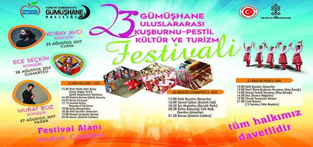 Gümüşhane Belediyesi tarafından bu yıl 23.sü yapılacak olan Uluslararası Kuşburnu-Pestil, Kültür ve Turizm Festivali programı belli oldu.
